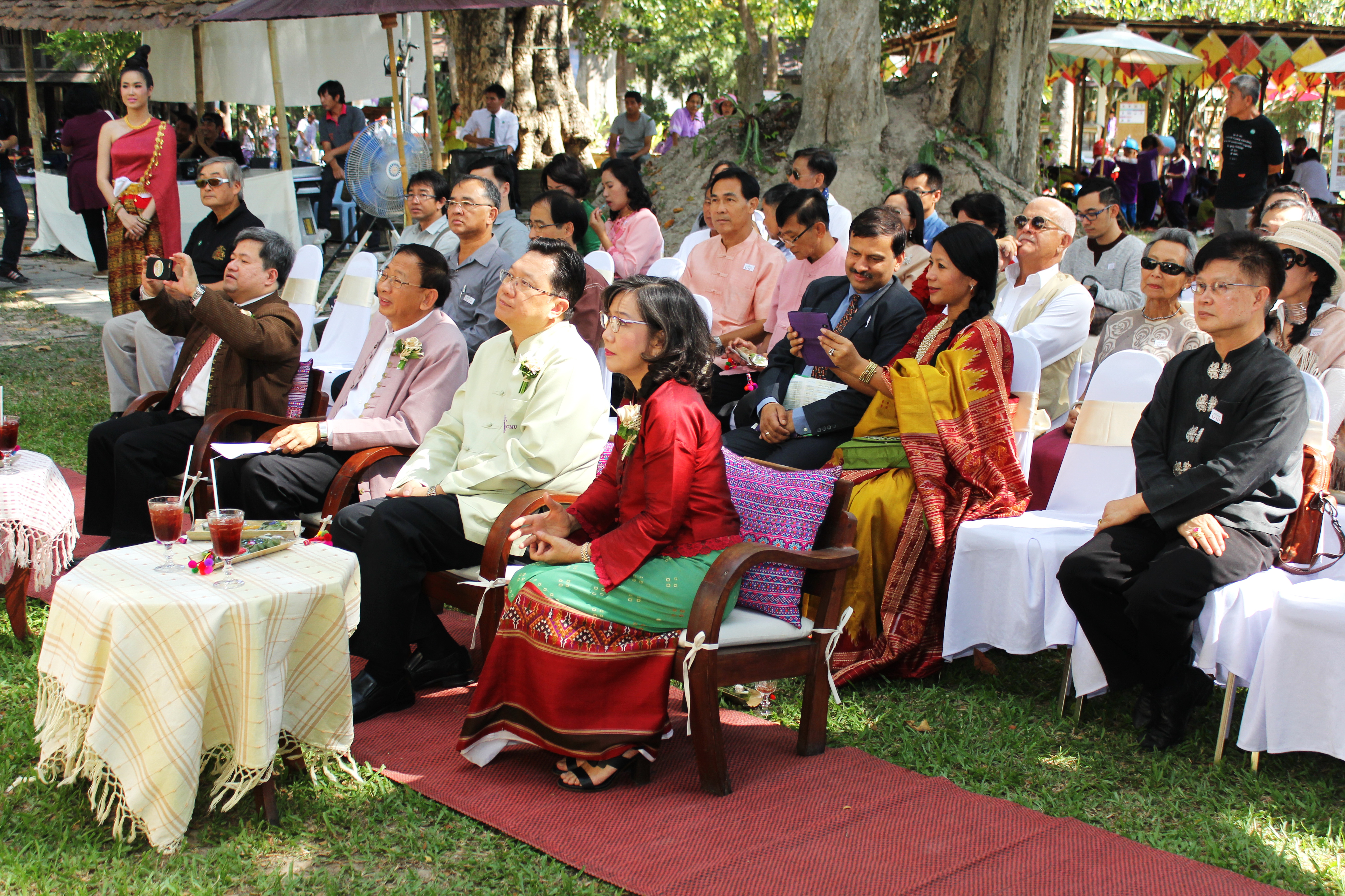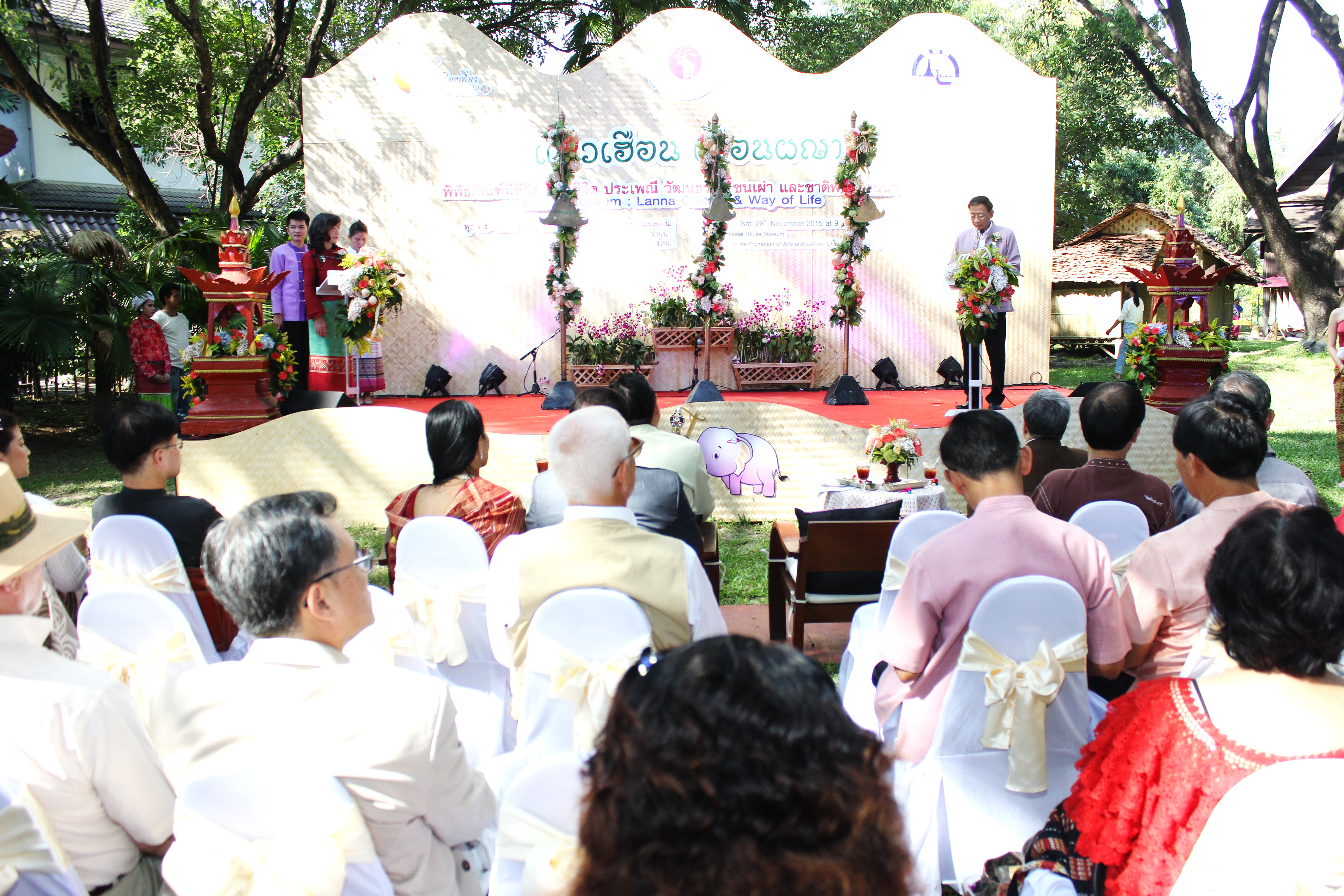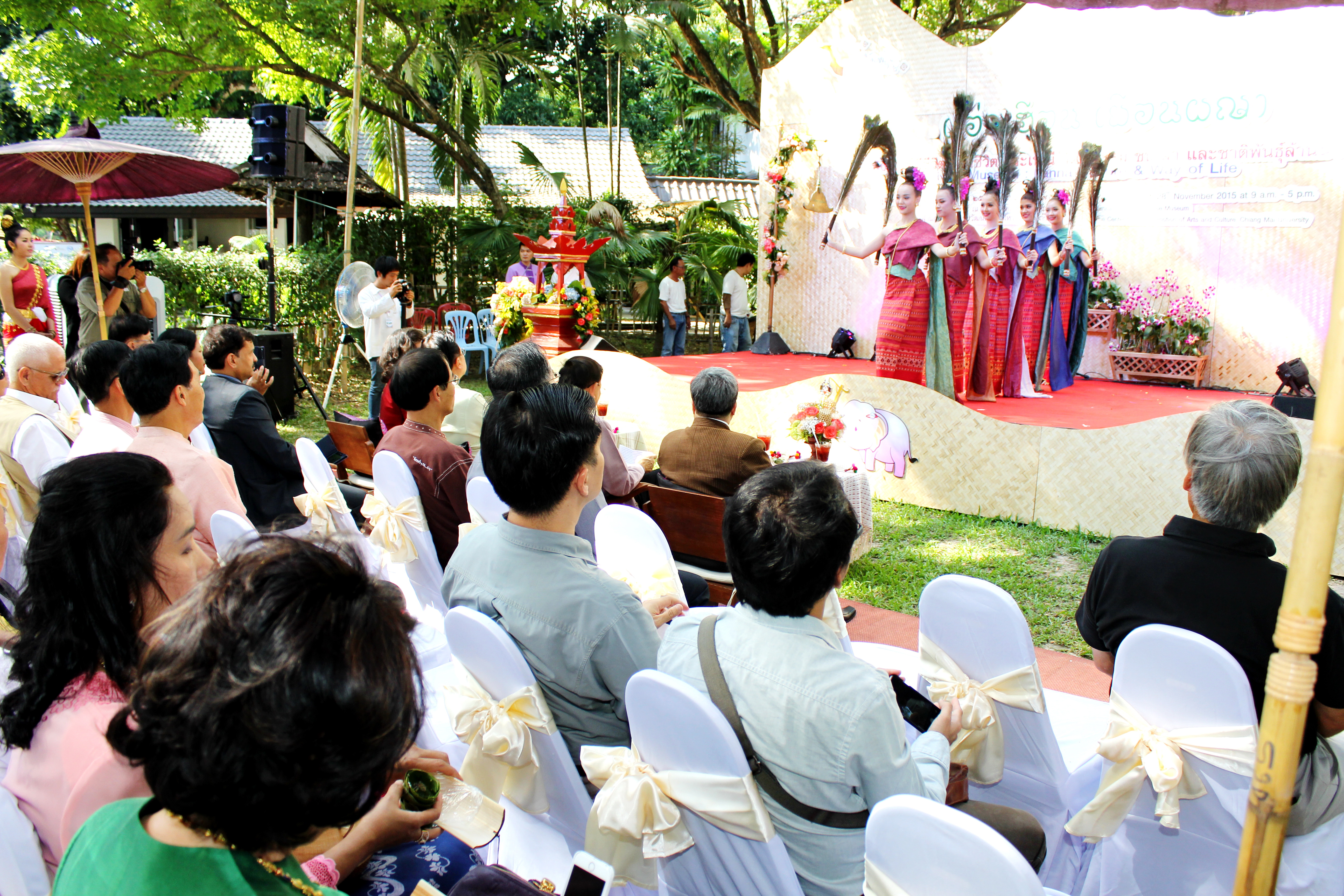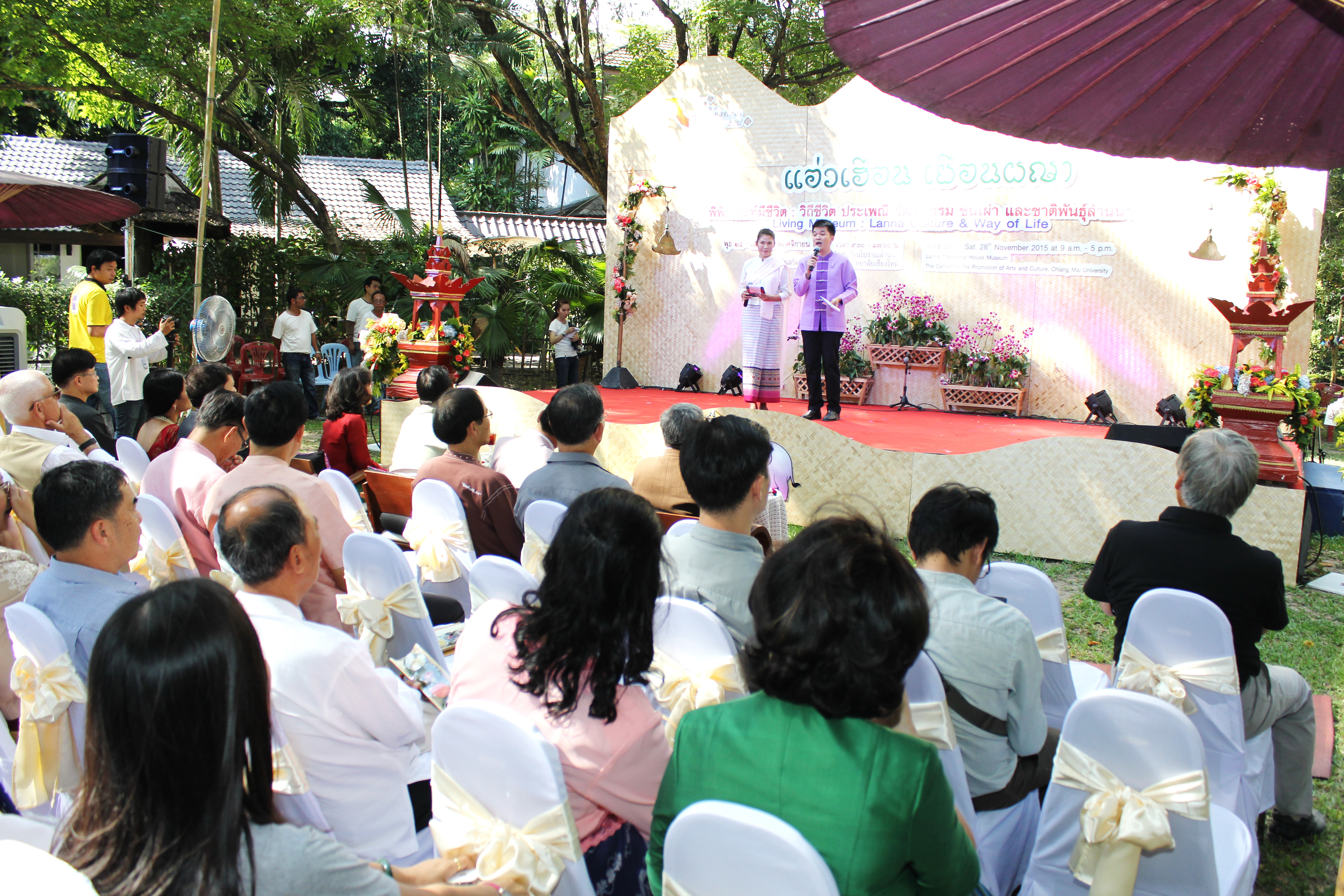 เมื่ิอวันที่ 25 พฤศจิกายน 2558 สำนักส่งเสริมศิลปวัฒนธรรม มช. จัดพิธีเปิดงาน แอ่วเฮือน เยือนผญา พิพิธภัณฑ์มีชีวิต วิถีชีวิต ประเพณี วัฒนธรรม ชนเผ่า และชาติพันธุ์ล้านนา โดยมี นายนายกฤษณ์ ธนาวณิช รองผู้ว่าราชการจังหวัดเชียงใหม่ ผศ.นพ.ศุภชัย เชื้อรัตนพงษ์ รองอธิการบดีฝ่ายบริการสภามหาวิทยาลัย มช. นายวิสูตร บัวชุม ผู้อำนวยการการท่องเที่ยวแห่งประเทศไทย (ททท.) สำนักงานเชียงใหม่ และผศ.วิลาวัณย์ เศวตเศรนี ผู้อำนวยการสำนักส่งเสริมศิลปวัฒนธรรม มช.ร่วมเปิดงาน ‘แอ่วเฮือน เยือนผญา’ พิพิธภัณฑ์มีชีวิต : วิถีชีวิต ประเพณี วัฒนธรรม ชนเผ่า และชาติพันธุ์ล้านนา พร้อมด้วยกงสุลกิตติมศักดิ์จากประเทศต่างๆ และแขกผู้มีเกียรติเข้าร่วมพิธีเปิดดังกล่าว โดยมีรูปแบบการจัดแสดงวิถีชีวิต ประเพณี วัฒนธรรม ชนเผ่า และชาติพันธุ์ล้านนา และสาธิตกิจกรรมการเรียนรู้ 8 ด้านล้านนา โครงการล้านนาคดีศึกษา มหาวิทยาลัยเชียงใหม่ การฝึกประดิษฐ์และสาธิตการละเล่น “ม่วนงันของเล่น 4 ภาค” ข่วงสุขภาพ การสาธิตนวดแผนไทย (นวดสวนดอก) การฝึกประดิษฐ์และสาธิต การผลิตงานหัตถกรรมพื้นบ้าน “ลานสรวงข่วงศิลป์” จากพ่อครู แม่ครู และสล่าเมือง กาดหมั้ว และการแสดงด้านศิลปวัฒนธรรมต่างๆในรอบบริเวณพิพิธภัณฑ์เรือนโบราณล้านนา ทั้งนี้เพื่อเป็นการประชาสัมพันธ์การจัดงานดังกล่าวให้เป็นไปอย่างทั่วถึงทุกกลุ่มเป้าหมาย และอีกทั้งเป็นการส่งเสริมการท่องเที่ยวภายในจังหวัดเชียงใหม่ในช่วงฤดูกาลท่องเที่ยวประเพณียี่เป็ง โดยงานแอ่วเฮือน เยือนผญา พิพิธภัณฑ์มีชีวิต วิถีชีวิต ประเพณี วัฒนธรรม ชนเผ่า และชาติพันธุ์ล้านนา จัดขึ้นตั้งแต่วันที่ 25-28พฤศจิกายน 2558 เวลา 09.00- 17.00 น. ณ พิพิธภัณฑ์เรือนโบราณล้านนา สำนักส่งเสริมศิลปวัฒนธรรม มช.