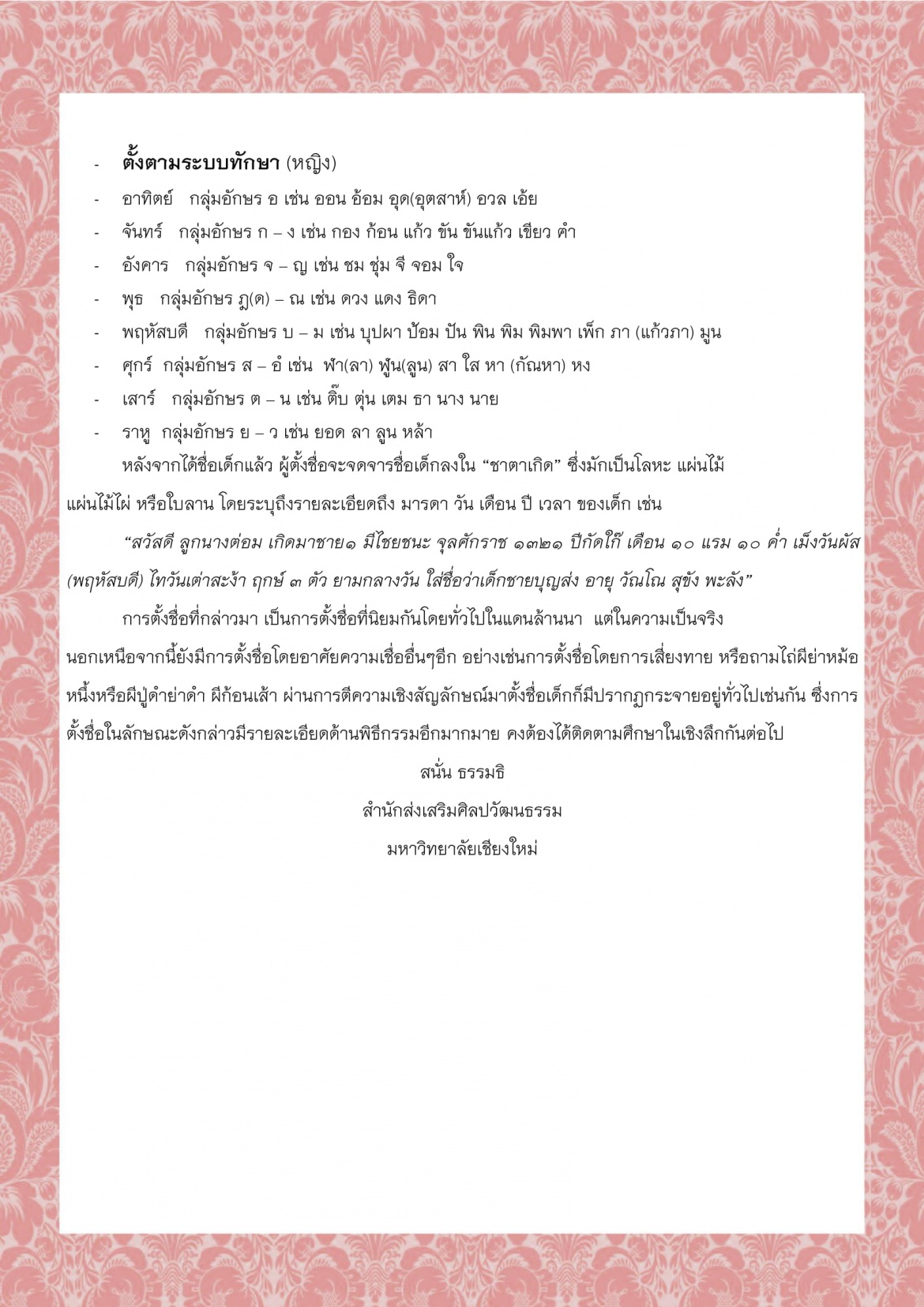 การตั้งชื่อเด็กในล้านนา - 16 พฤศจิกายน 2563
