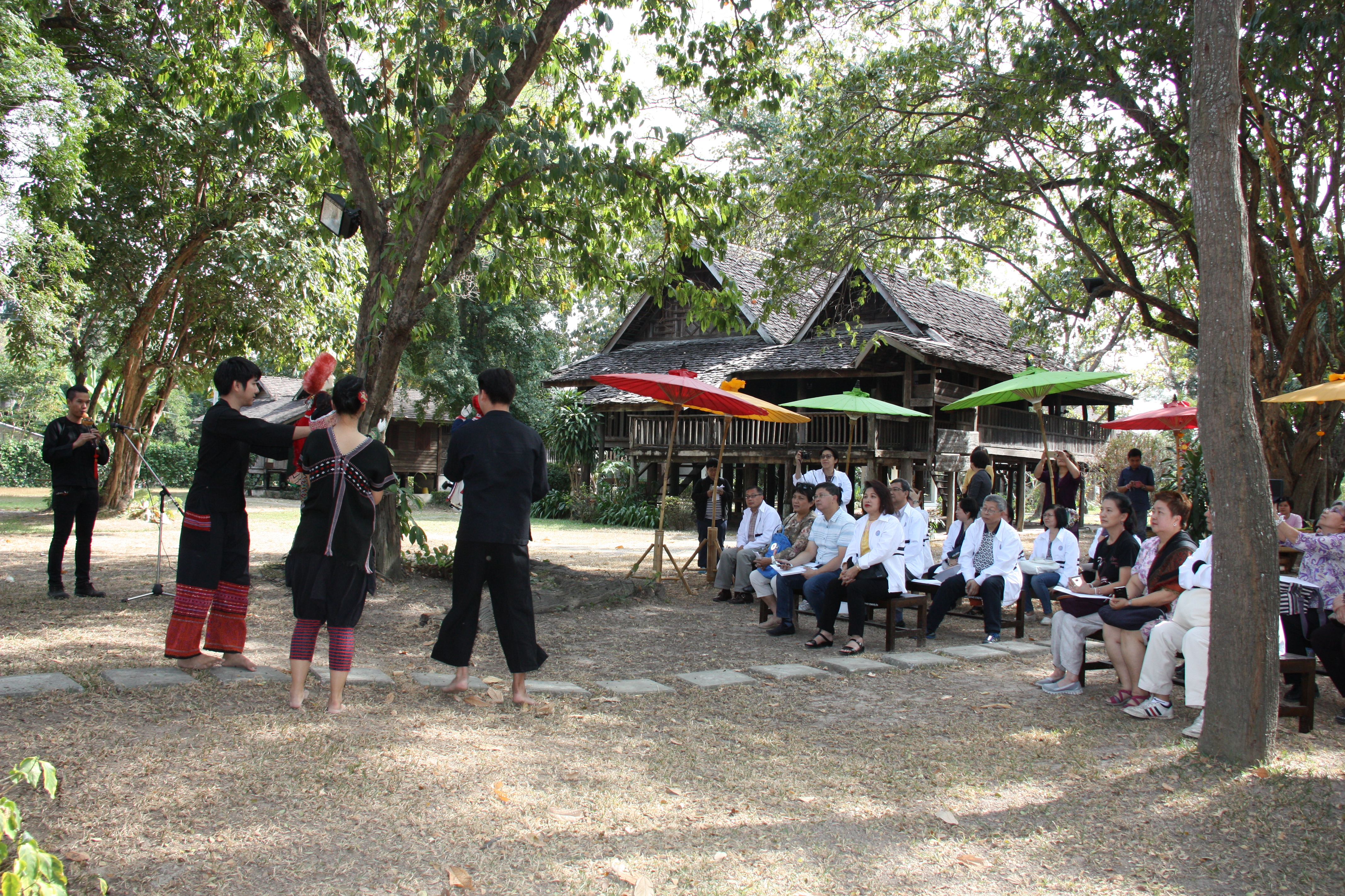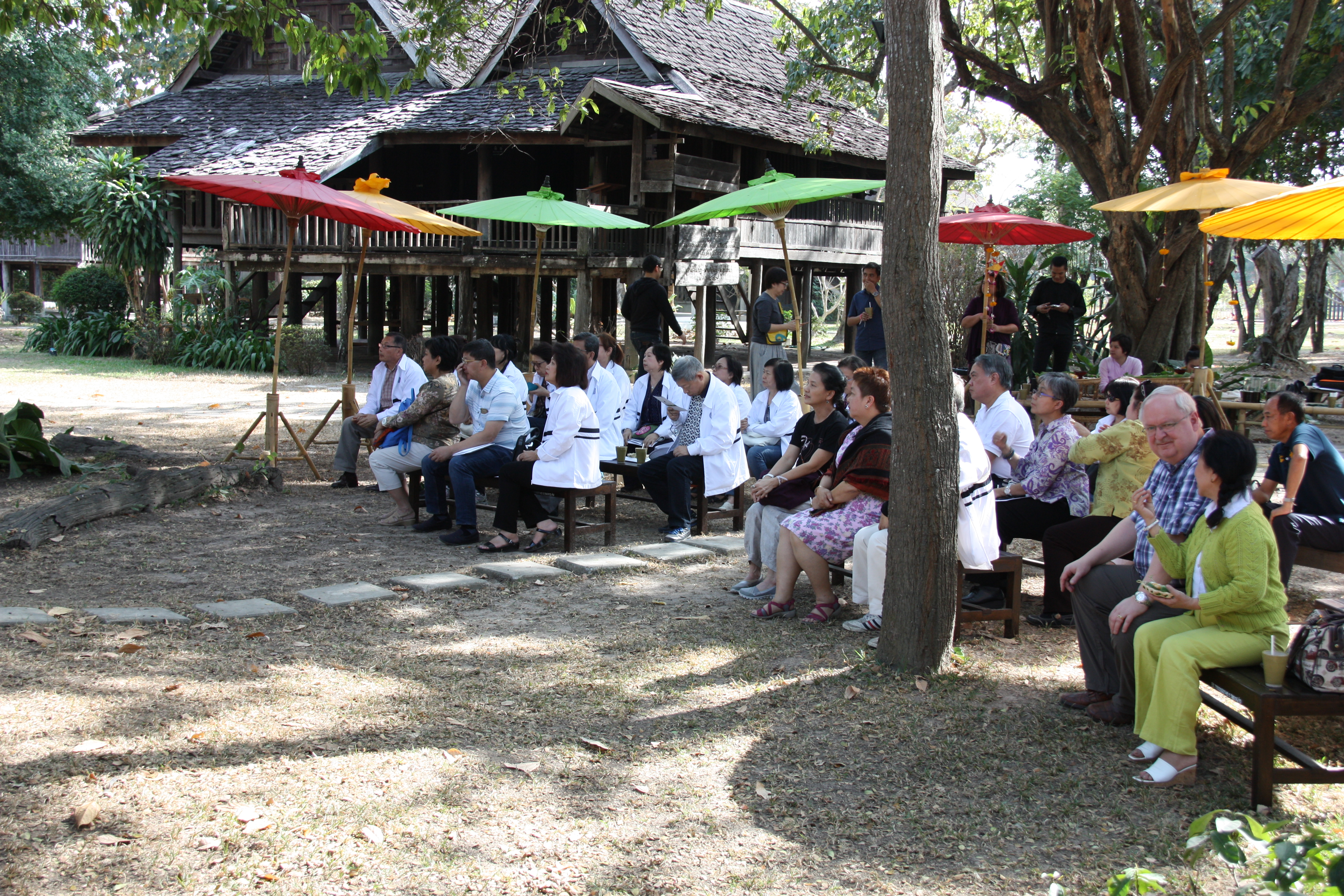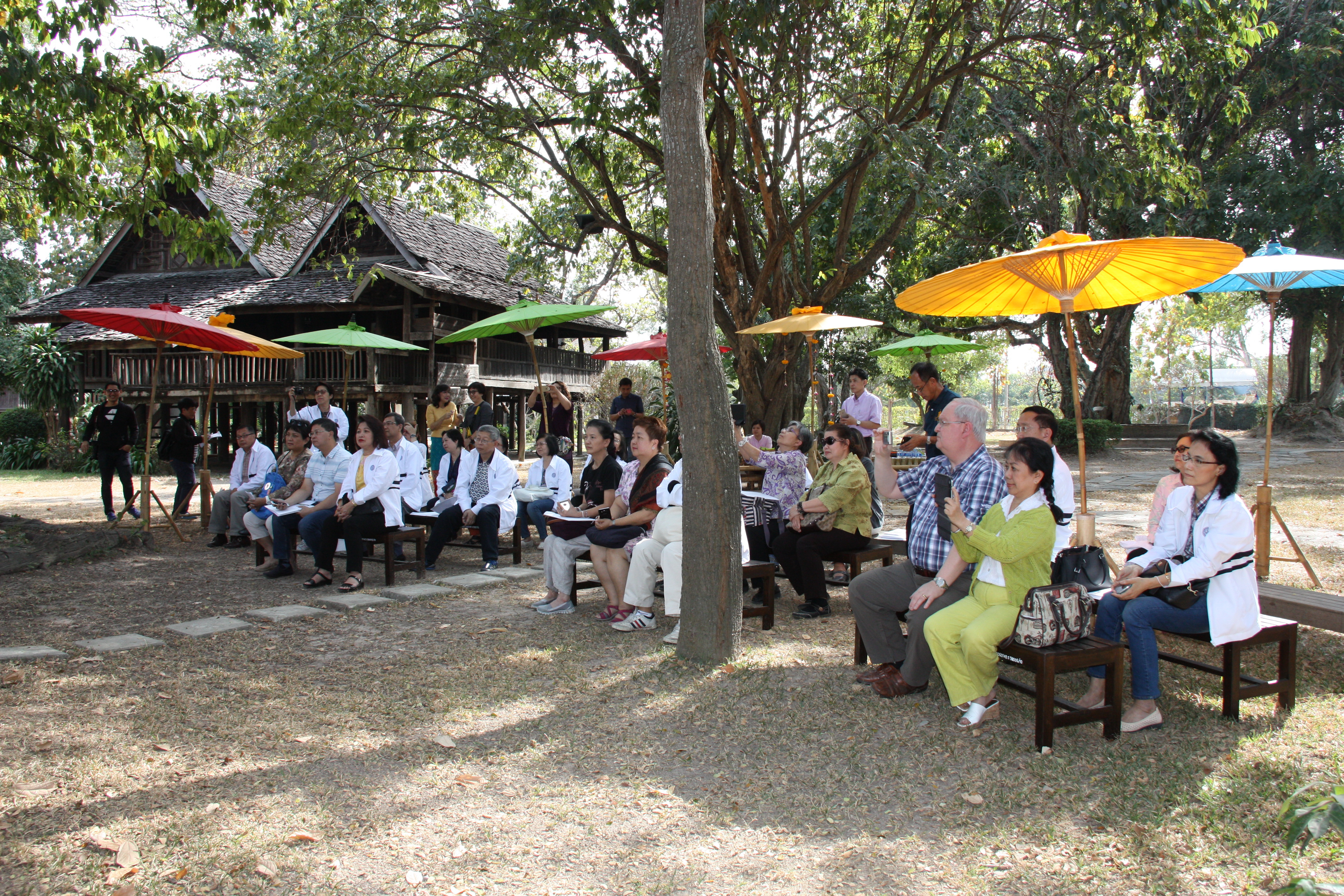 อาจารย์ ดร. วิถี พานิชพันธ์ กรรมการอำนวยการผู้ทรงคุณวุฒิประจำสำนักส่งเสริมศิลปวัฒนธรรม พร้อมด้วย ผู้ช่วยศาสตราจารย์วิลาวัณย์ เศวตเศรนี ผู้อำนวยการสำนักส่งเสริมศิลปวัฒนธรรม การต้อนรับผู้เข้าร่วมอบรมหลักสูตรพัฒนาแนวคิด เพื่อปรับชีวิตสู่จุดหมาย ประจำปี 2559 โดยหลักสูตรดังกล่าวจัดขึ้นโดยสถาบันการต่างประเทศเทวะวงศ์วโรปการ กระทรวงการต่างประเทศ เพื่อเพิ่มผลสัมฤทธิ์ในการปฏิบัติงาน ตลอดจนสร้างขวัญกำลังใจให้แก่ข้าราชการกระทรวงฯ ที่รับราชการมายาวนาน และได้เรียนรู้กิจกรรมที่เหมาะสมเพื่อเป็นทางเลือกในการดำเนินชีวิตในภายหน้า โดยมีผู้เข้าร่วมอบรมในหลักสูตรซึ่งได้แก่ อดีตเอคอัครราชทูต อัครราชทูต ข้าราชการกระทรวงฯ และคู่สมรส จำนวน30 คน ในวันที่ 11 มกราคม 2559 ณ พิพิธภัณฑ์เรือนโบราณล้านนา สำนักส่งเสริมศิลปวัฒนธรรม มช.