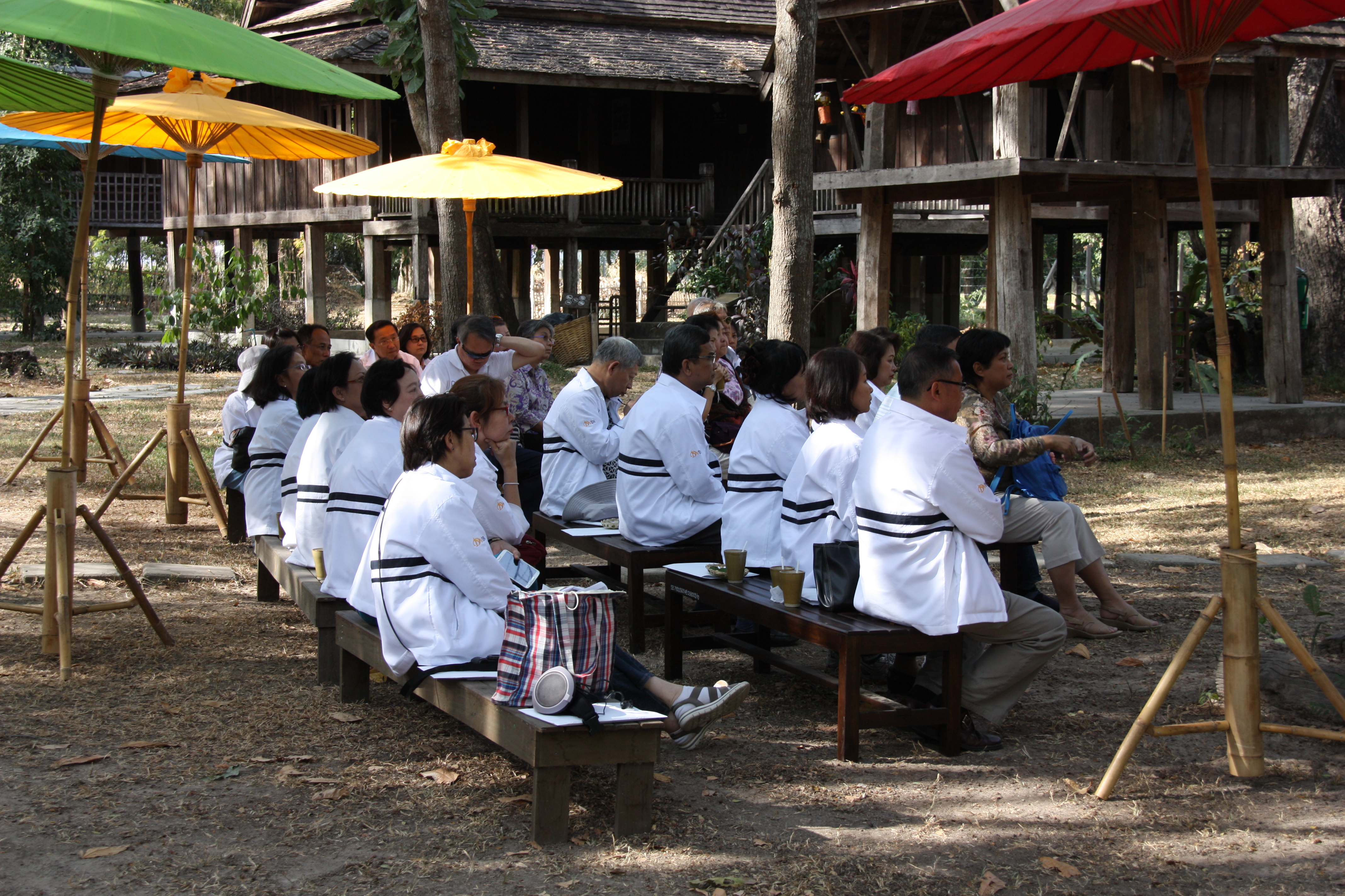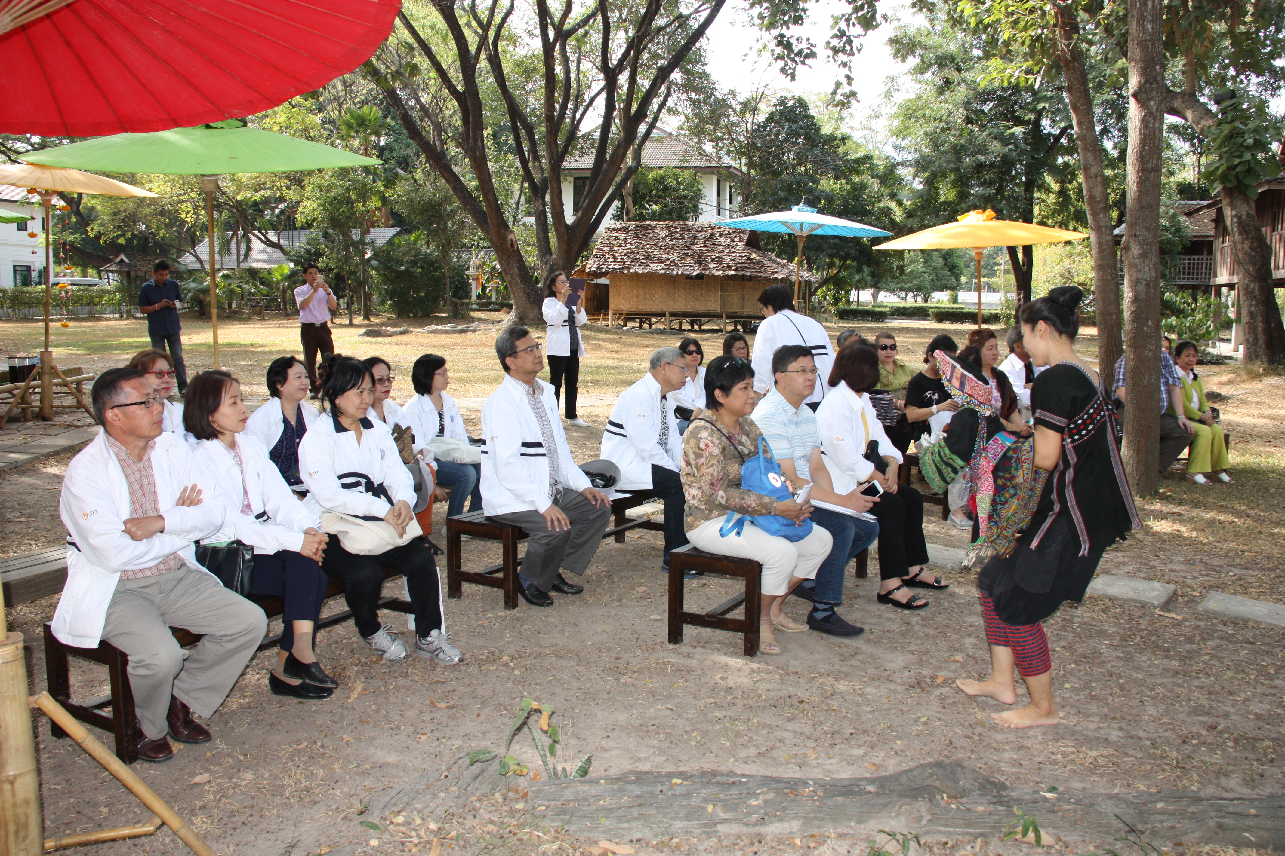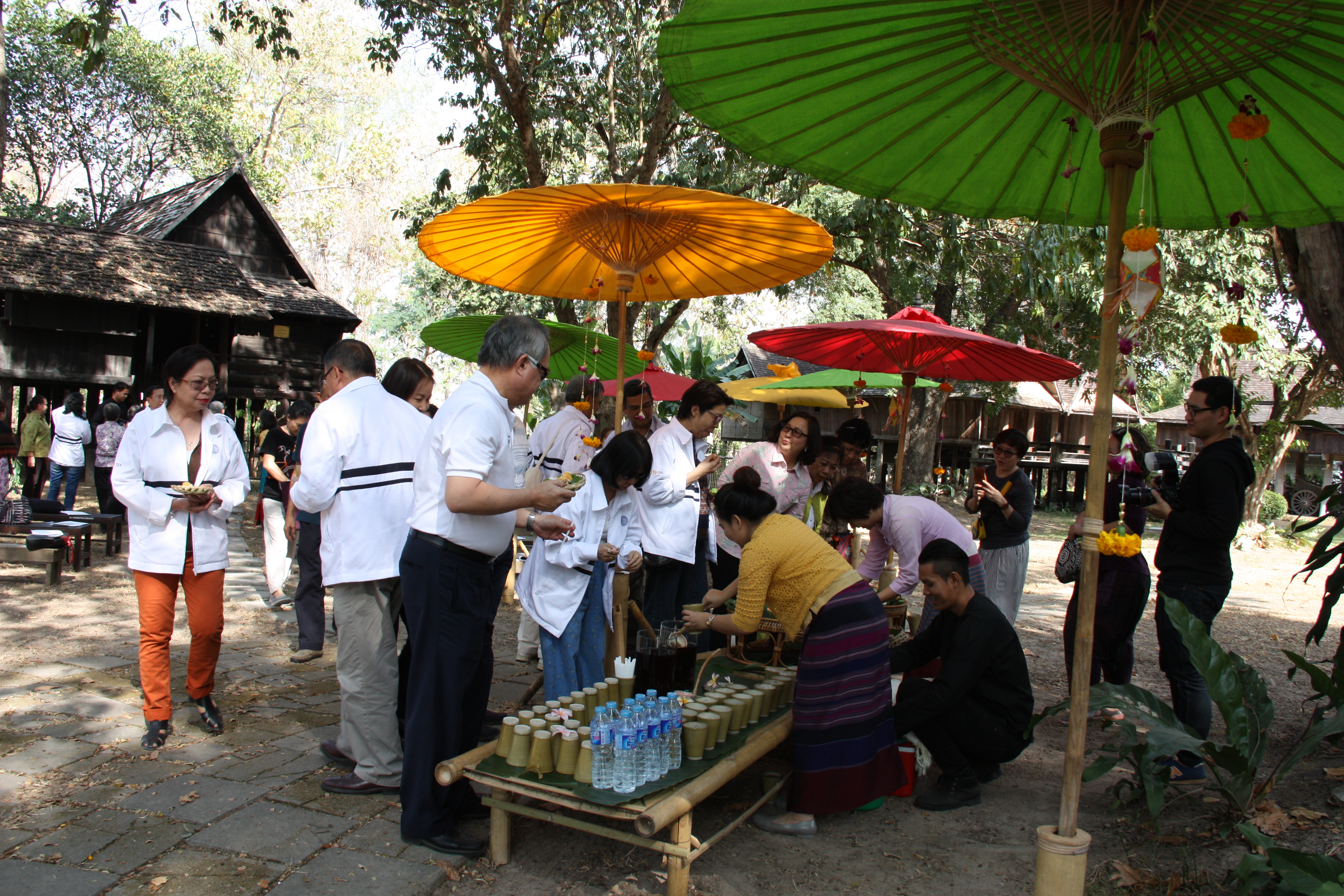 อาจารย์ ดร. วิถี พานิชพันธ์ กรรมการอำนวยการผู้ทรงคุณวุฒิประจำสำนักส่งเสริมศิลปวัฒนธรรม พร้อมด้วย ผู้ช่วยศาสตราจารย์วิลาวัณย์ เศวตเศรนี ผู้อำนวยการสำนักส่งเสริมศิลปวัฒนธรรม การต้อนรับผู้เข้าร่วมอบรมหลักสูตรพัฒนาแนวคิด เพื่อปรับชีวิตสู่จุดหมาย ประจำปี 2559 โดยหลักสูตรดังกล่าวจัดขึ้นโดยสถาบันการต่างประเทศเทวะวงศ์วโรปการ กระทรวงการต่างประเทศ เพื่อเพิ่มผลสัมฤทธิ์ในการปฏิบัติงาน ตลอดจนสร้างขวัญกำลังใจให้แก่ข้าราชการกระทรวงฯ ที่รับราชการมายาวนาน และได้เรียนรู้กิจกรรมที่เหมาะสมเพื่อเป็นทางเลือกในการดำเนินชีวิตในภายหน้า โดยมีผู้เข้าร่วมอบรมในหลักสูตรซึ่งได้แก่ อดีตเอคอัครราชทูต อัครราชทูต ข้าราชการกระทรวงฯ และคู่สมรส จำนวน30 คน ในวันที่ 11 มกราคม 2559 ณ พิพิธภัณฑ์เรือนโบราณล้านนา สำนักส่งเสริมศิลปวัฒนธรรม มช.