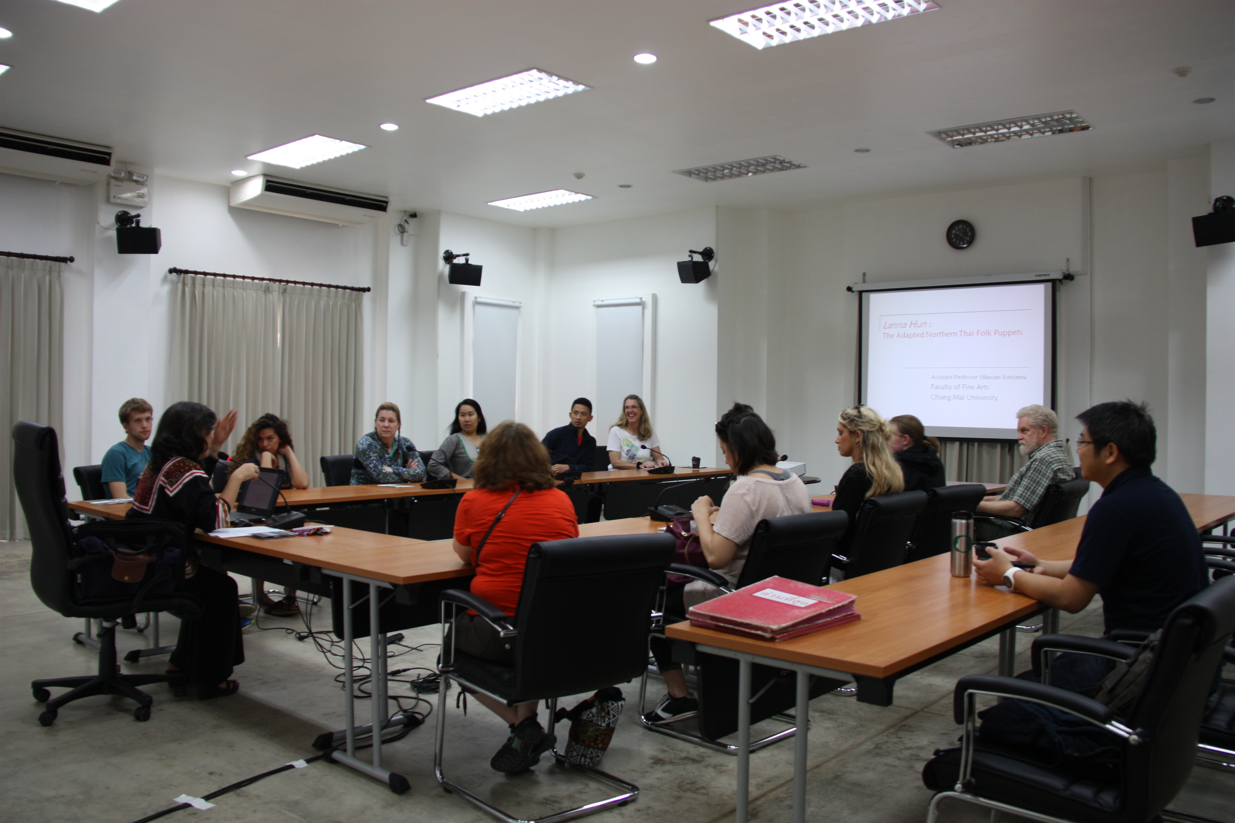ผู้ช่วยศาสตราจารย์วิลาวัณย์ เศวตเศรนี ผู้อำนวยการสำนักส่งเสริมศิลปวัฒนธรรม ให้เกียรติเป็นวิทยากรบรรยายในหัวข้อเกี่ยวกับวัฒนธรรมไทย และศิลปะการละครหุ่นมือ แก่คณาจารย์และนักศึกษาจาก University of Illinois-Springfield,USA ในโอกาสที่คณะมาประเทศไทยเพื่อศึกษา และหาประสบการณ์ในหลักสตูรการศึกษาในต่างประเทศของสถาบัน Ace! – EducationUSA (Ace!) ในวันที่ 14 มกราคม 2559 ณ ห้องประชุมสำนักส่งเสริมศิลปวัฒนธรรม มช.