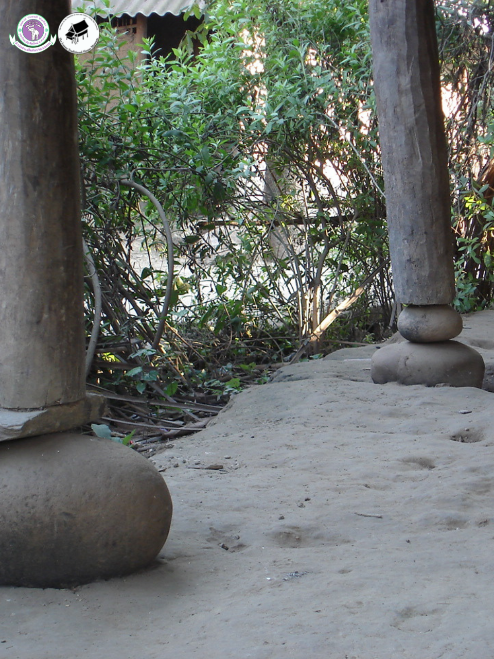 เสา ทำมาจากไม้จริงทั้งท่อน เนื่องจากมีความแข็งแรงทนทานสูงกว่าไม้ไผ่ รูปทรงของเสาเป็นทรงกระบอก มีความยาวตั้งแต่พื้นจนถึงชายหลังคา ลักษณะการตั้งเสาจะไม่ใช้วิธีการฝังแต่จะวางบนก้อนหินขนาดใหญ่โดยไม่มีการยึด ปัจจุบันมีการปรับมาใช้ฐานรองที่ทำได้สะดวกโดยการหล่อเทปูนซีเมนต์ให้สูงขึ้นมาในระดับหนึ่ง แล้วจึงนำเสาวางไว้บนฐานซีเมนต์นั้น