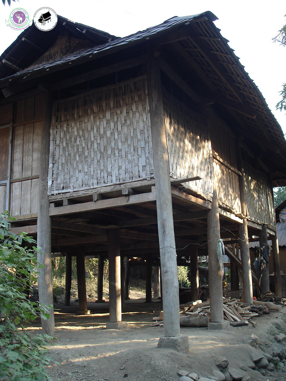 - ฝาเรือนและพื้น เรือนแต่ละหลังจะมีการผสมผสานของวัสดุในการทำฝาเรือนหลากหลายชนิด วัสดุที่นิยมใช้มี 3 ชนิดคือ ไม้กระดาน ไม้ไผ่สานและฝาที่ทำมาจากดินผสมกับฟางซึ่งมีลักษณะคล้ายปูน นิยมใช้มากในส่วนที่เป็นครัว ไม้ที่ใช้ทำพื้นเรือนจะเป็นไม้จริงที่แต่งทรงให้เป็นแผ่น บางหลังก็ใช้ไม้ไผ่ทั้งปล้องแล้วสับไม้ให้เป็นผืน