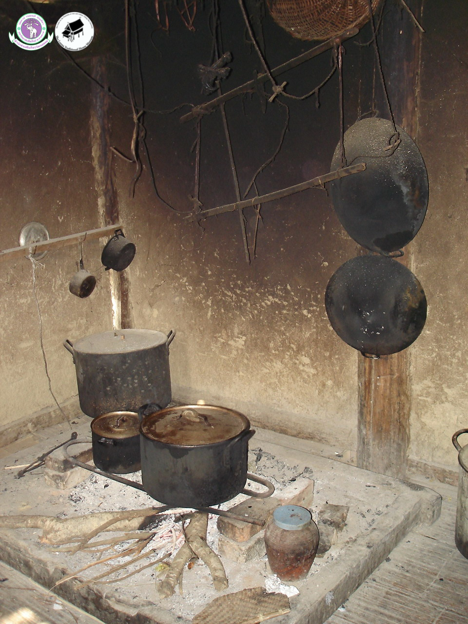 - เรือนครัว เดิมทีชาวไทดำไม่มีเรือนครัวแยกออกมาอย่างเป็นสัดส่วนเหมือนปัจจุบันที่สร้างเรือนครัวแทนชาน เพราะเตาหรือจี่ไฟในภาษาไทดำนั้นจะอยู่ภายในตัวเรือน โดยเตามีลักษณะเป็นกระบะทรงสี่เหลี่ยม มีก้อนหินวางอยู่ ใช้ฟืนและถ่านเป็นเชื้อเพลิง ซึ่งเตาแบบนี้เหมือนกับที่คนไทยใช้กันในสมัยก่อน เหนือเตาขึ้นไปจะมีไม้ไผ่สานเป็นแผงห้อยอยู่ เพื่อเก็บข้าวของเครื่องใช้ และวัตถุดิบเครื่องปรุงที่ใช้ประกอบอาหาร