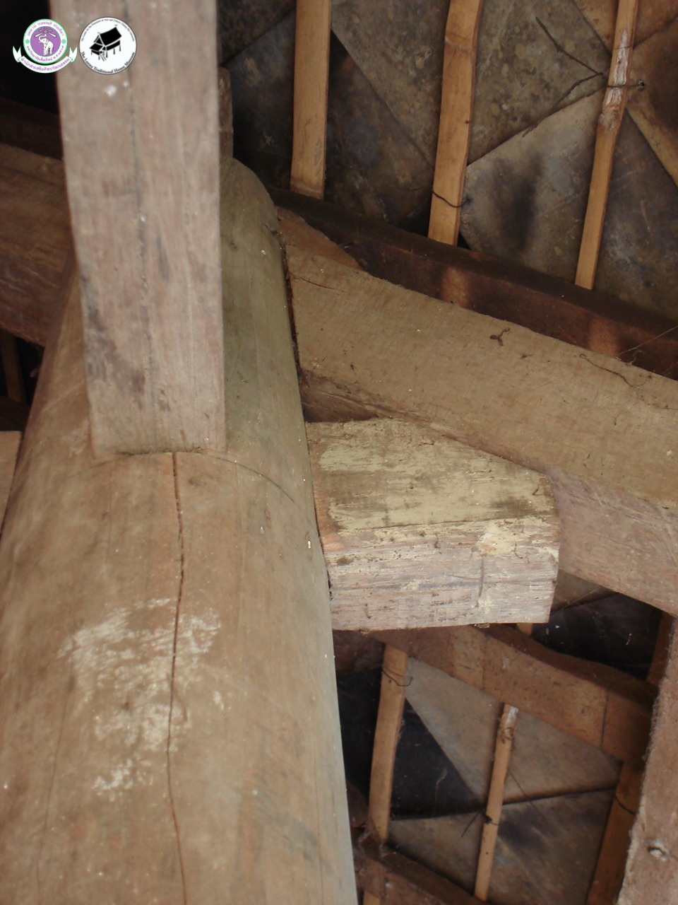 โครงสร้างของเสาและคานของเรือน เมื่อมองจากภายในเรือน
