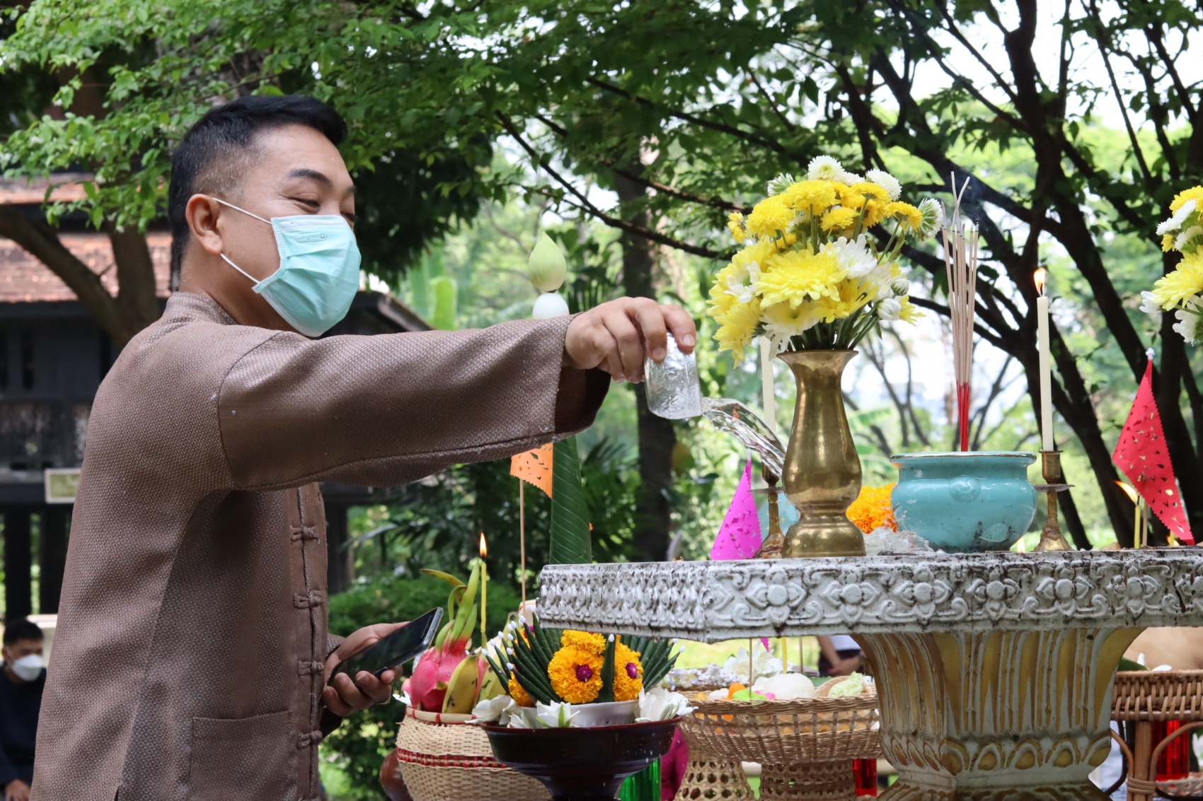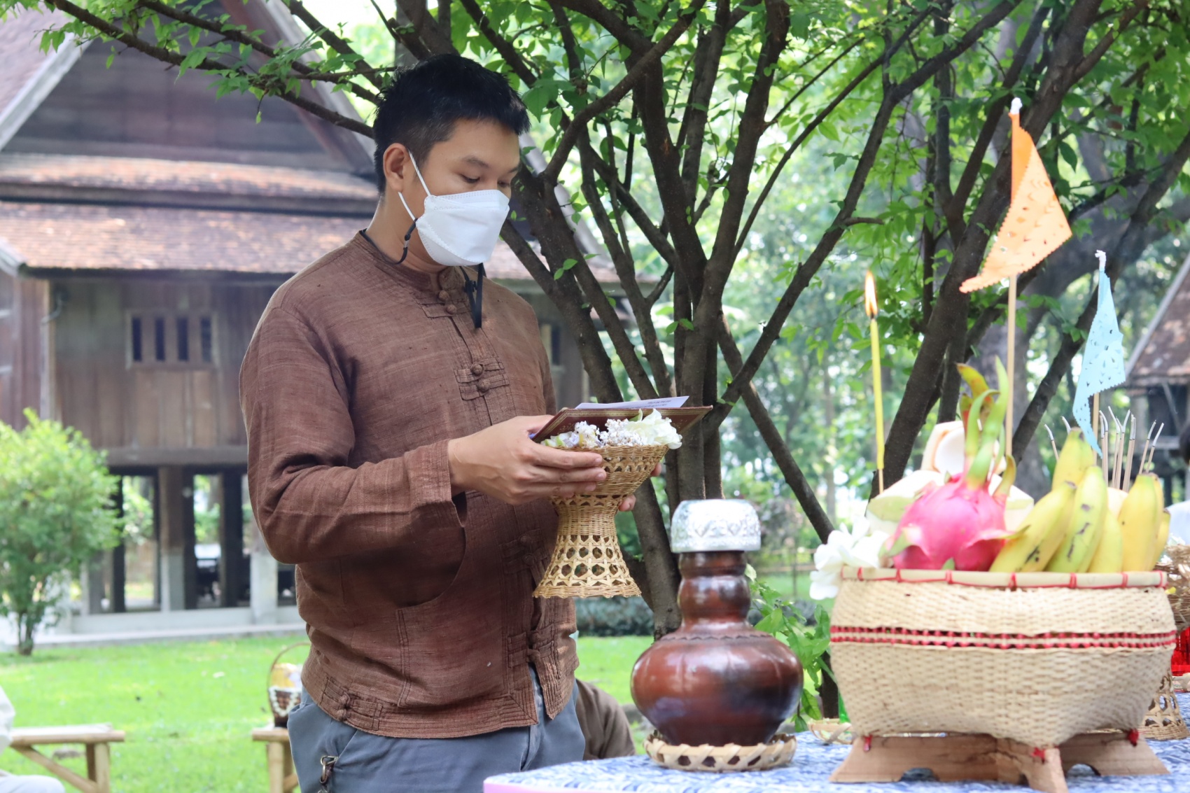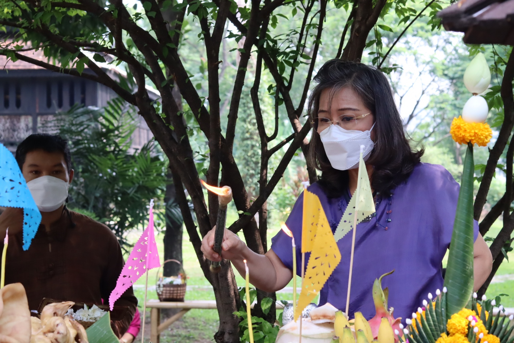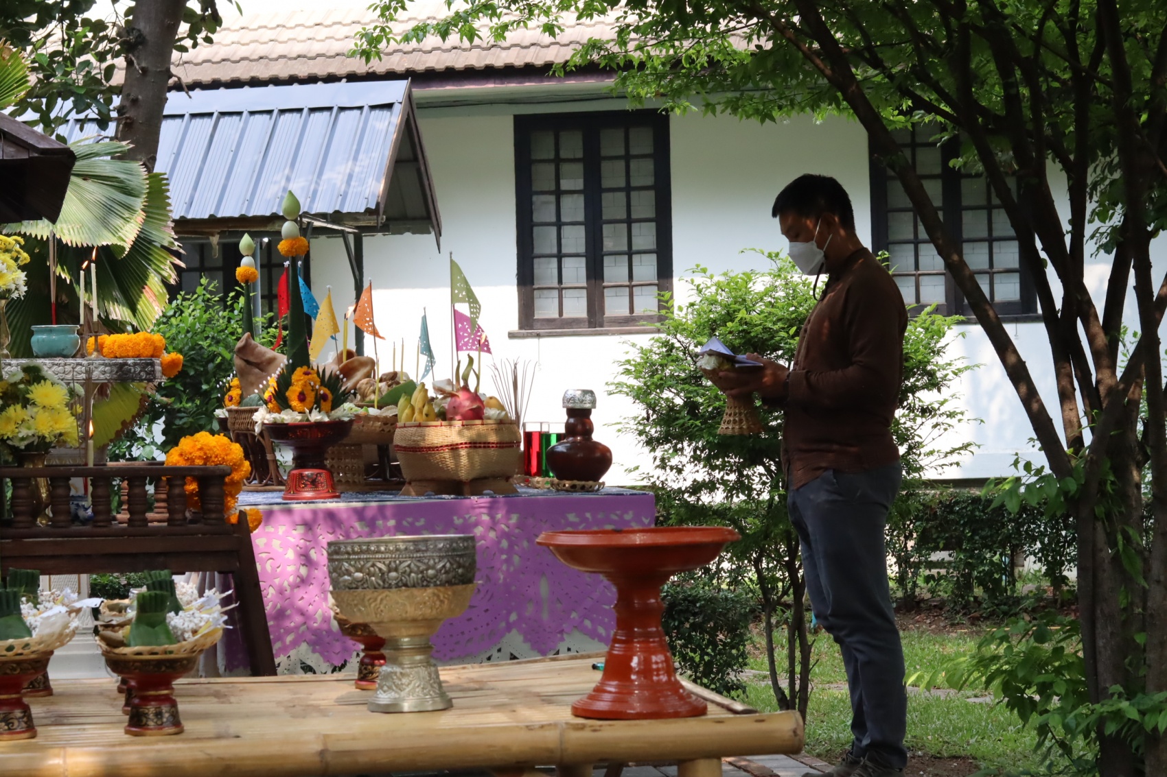 สำนักส่งเสริมศิลปวัฒนธรรม จัดพิธีไหว้พระภูมิเจ้าที่เนื่องในประเพณีปีใหม่เมือง เพื่อความเป็นสิริมงคลแก่หน่วยงาน โดยมีผู้ช่วยศาสตราจารย์วิลาวัณย์ เศวตเศรนี ผู้อำนวยการสำนักส่งเสริมศิลปวัฒนธรรม พร้อมด้วยบุคลากรเข้าร่วมพิธี ในวันที่ 27 เมษายน 2565 ณ พิพิธภัณฑ์เรือนโบราณล้านนา สำนักส่งเสริมศิลปวัฒนธรรม มหาวิทยาลัยเชียงใหม่