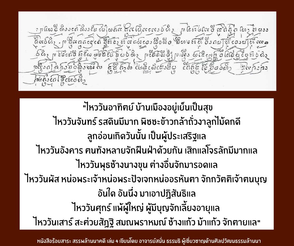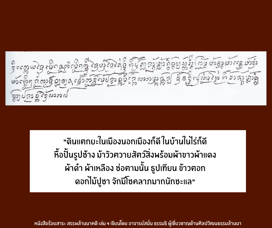 ข้อมูลจาก : หนังสือร้อยสาระ สรรพล้านนาคดี เล่มที่ 4 เขียนโดยอาจารย์สนั่น ธรรมธิ ผู้เชี่ยวชาญด้านศิลปวัฒนธรรมล้านนา