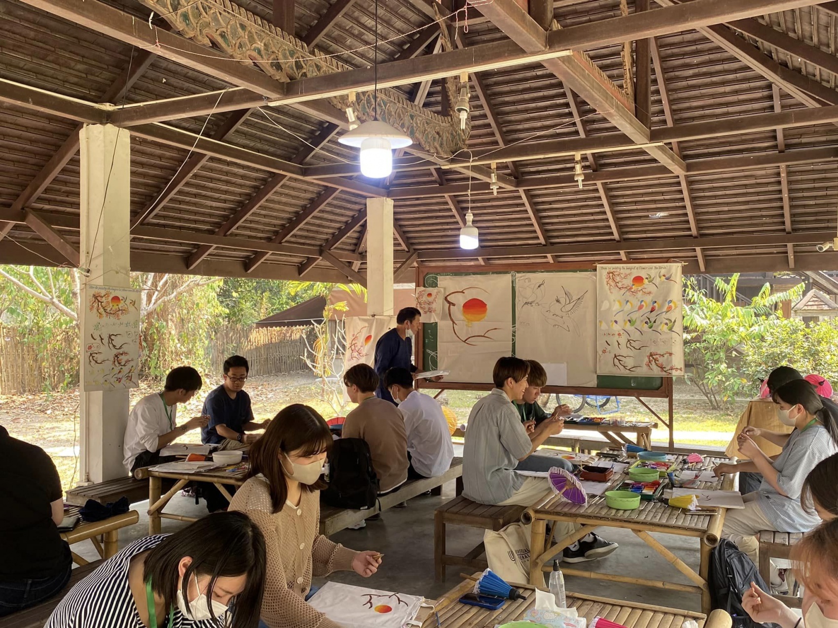 สถาบันภาษา มหาวิทยาลัยเชียงใหม่ นำนักศึกษาจาก Kyoto Sanyo University เข้าทัศนศึกษาและทำกิจกรรมด้านศิลปวัฒนธรรม ฝึกปฏิบัติงานหัตถกรรมการเพ้นท์ร่มล้านนา ณ พิพิธภัณฑ์เรือนโบราณล้านนา มหาวิทยาลัยเชียงใหม่ ในวันที่ 28 กุมภาพันธ์ 2566