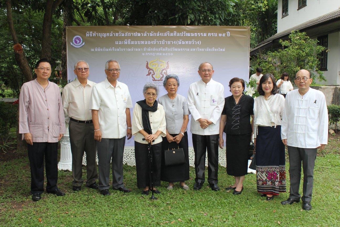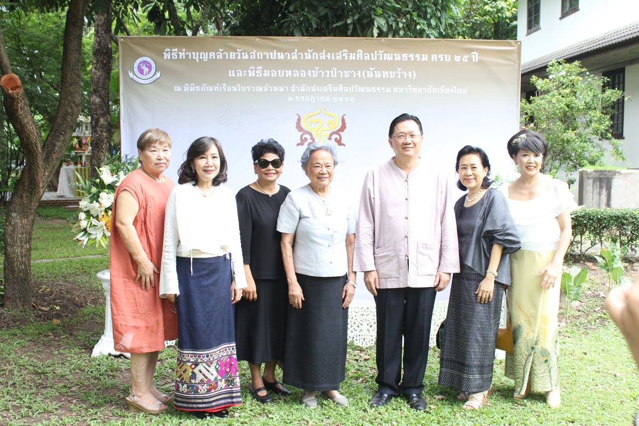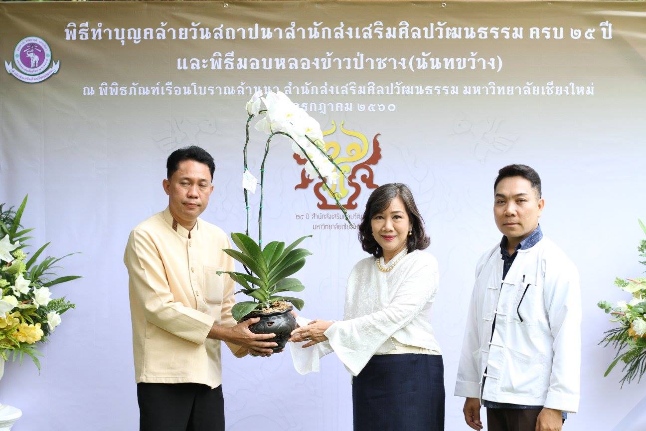 สำนักส่งเสริมศิลปวัฒนธรรม มหาวิทยาลัยเชียงใหม่ จัดพิธีทำบุญเนื่องวันคล้ายวันสถาปนาสำนักส่งเสริมศิลปวัฒนธรรม ครบ 24 ปี และพิธีมอบหลองข้าวป่าซาง (นันทขว้าง) เมื่อวันที่ 2 กรกฎาคม 2560 โดยมีผู้ช่วยศาสตราจารย์นายแพทย์ศุภชัย เชื้อรัตนพงษ์ รักษาการแทนรองอธิการบดีฝ่ายกิจการสภามหาวิทยาลัย (ผู้แทนอธิการบดีมหาวิทยาลัยเชียงใหม่) เป็นประธานในพิธีฯ และผู้ช่วยศาสตราจารย์วิลาวัณย์ เศวตเศรนี รักษาการแทนผู้อำนวยการสำนักส่งเสริมศิลปวัฒนธรรม เป็นผู้กล่าวรายงานฯ ทั้งนี้ ได้รับเกียรติจาก ม.ร.ว.สุขุมพันธุ์ บริพัตร ประธานมูลนิธิจุมภฎ-พันธุ์ทิพย์ และคณะกรรมการมูลนิธิฯ คณะผู้บริหารมหาวิทยาลัยเชียงใหม่ ทายาทเจ้าของเรือน และแขกผู้มีเกียรติเข้าร่วมพิธีฯ ณ พิพิธภัณฑ์เรือนโบราณล้านนา สำนักส่งเสริมศิลปวัฒนธรรม มหาวิทยาลัยเชียงใหม่ ชมภาพข่าวเพิ่มเติมได้ที่ https://www.facebook.com/CPACCMU/media_set?set=a.1405601156175396.1073741974.100001765754054&type=3
